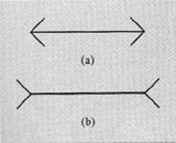 上图可称为是最典型的错觉图形,看起来下面的线段比上面的线段要长,其实,它们是一样长的。 上边的图形中的两条线段,看起来垂直的比水平的长,其实它们也是一样长的。 仔细找找上图中两条平行着的短短的线段,你会发现上面那条比下面那条要长,而实际上,它们的长度是相同的。 上边两图是另一组很有意思的错觉图形--对比错觉。你发现黑框中的灰色比白框中的灰色要浅,而其实它们是一样的 上图是著名的冯特错觉,它是由冯特发现和提出的。看起来,两条横线的中间分别向上下弯曲,其实,它们是完全平行的。 同样的,不要相信自己的眼睛,上边两图中的方形和小圆的的确确是正方形和圆。 同样,你会发现六个大圆中心处的圆比六个大小圆中心处的圆明显小的多,当然,它们的大小实际上也是一样的。